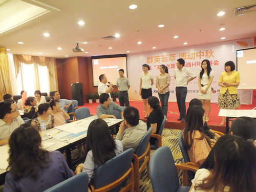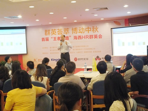 群英荟萃,博动中秋。10月12日下午,由金蝶软件、时代光华福建省教学中心、摩尔拓展、盛世德才猎头联合主办的首届海西HR群英会,以“王者归来”为主题,在音乐岛酒店圆满举行!本次沙龙吸引了100多位企业HR参与培训,同时诚邀到权威专家分享卓越团队的构建的奥秘,解读商业模式运作的精髓,帮助企业人力资源管理人员更好地实现战略目标、抓住时代和行业的契机,成功实现跨越性的飞跃!
